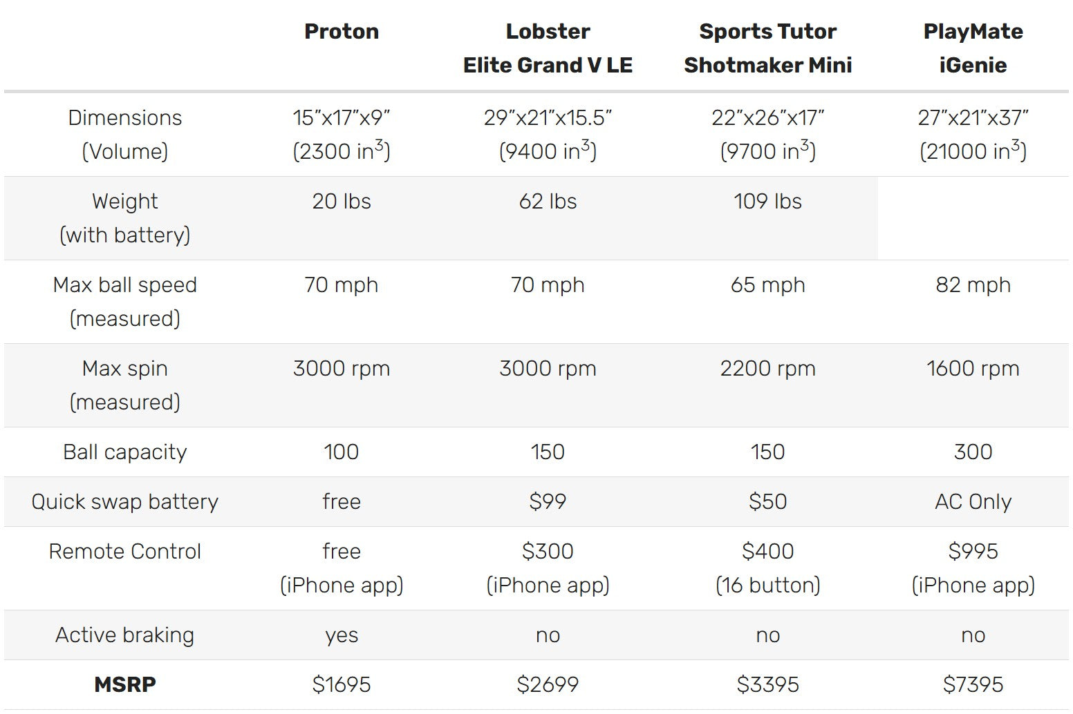 Light-Weight & Portable: At just 17 lbs and a compact design, Proton is less than half the weight and size of a typical portable ball machine